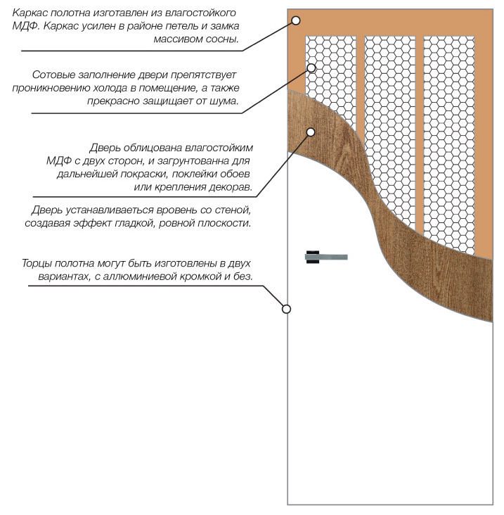 Поверхность дверного полотна можно: